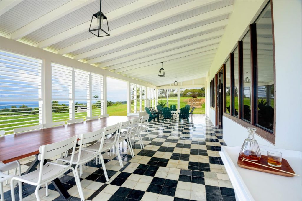 La villa est nichée au cœur d’un paysage agricole luxuriant, entre champs de canne à sucre et nature préservée.